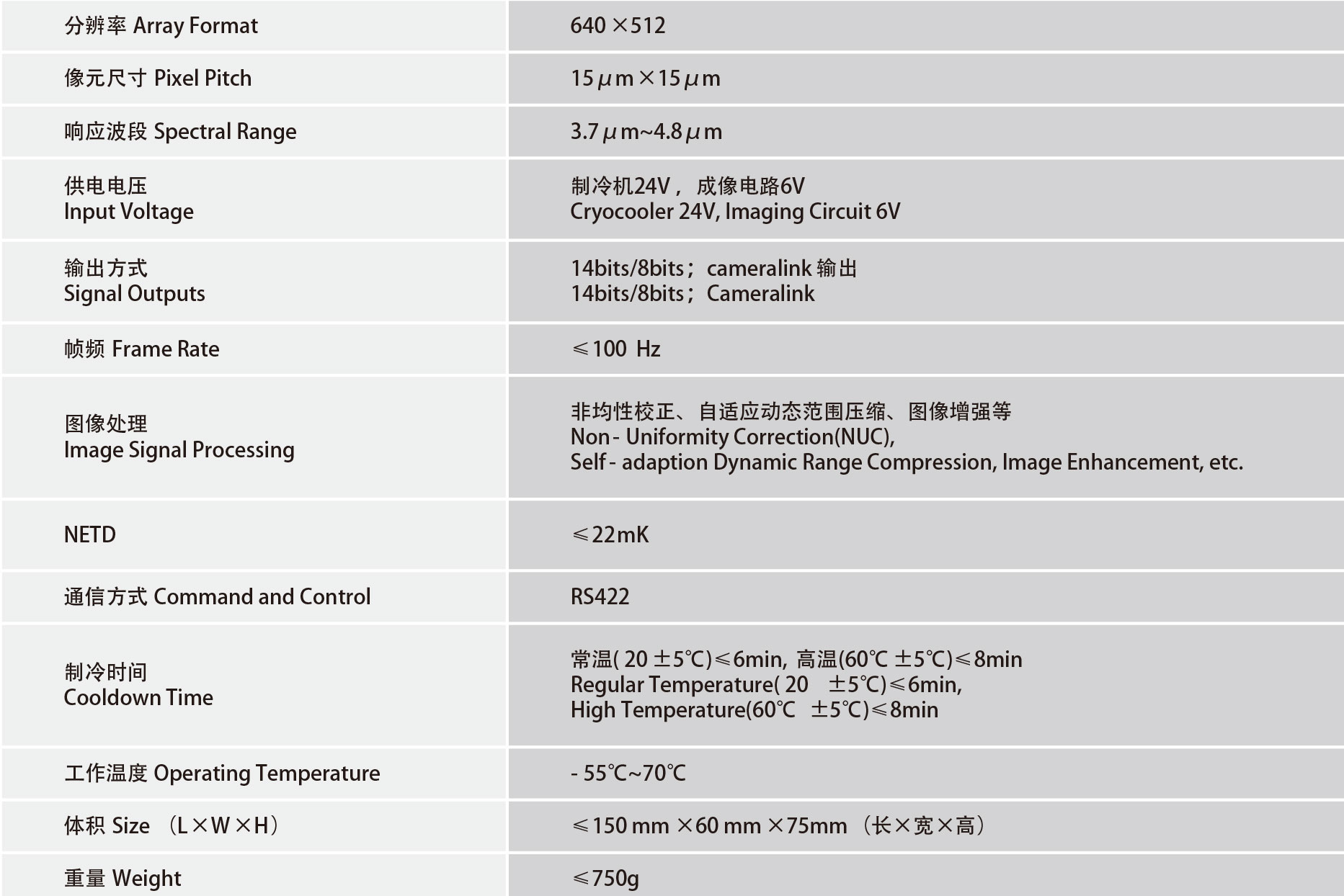 Standard digital infrared camera core with low power consumptions and less noise. The digital cooled MWLR 640×512 15μm camera core is designed with digital output, digital transmission and Image Signal Processing(ISP), forms the core of infrared imaging system. Those techniques allow system to enhance the integration and anti-electromagnetic interference ability while improving multiple performances in IR imaging. This product can be widely applied in soldier night vision solutions, thermal sights, weapon designation, airspace surveillance and infrared signature recognition tasks.
