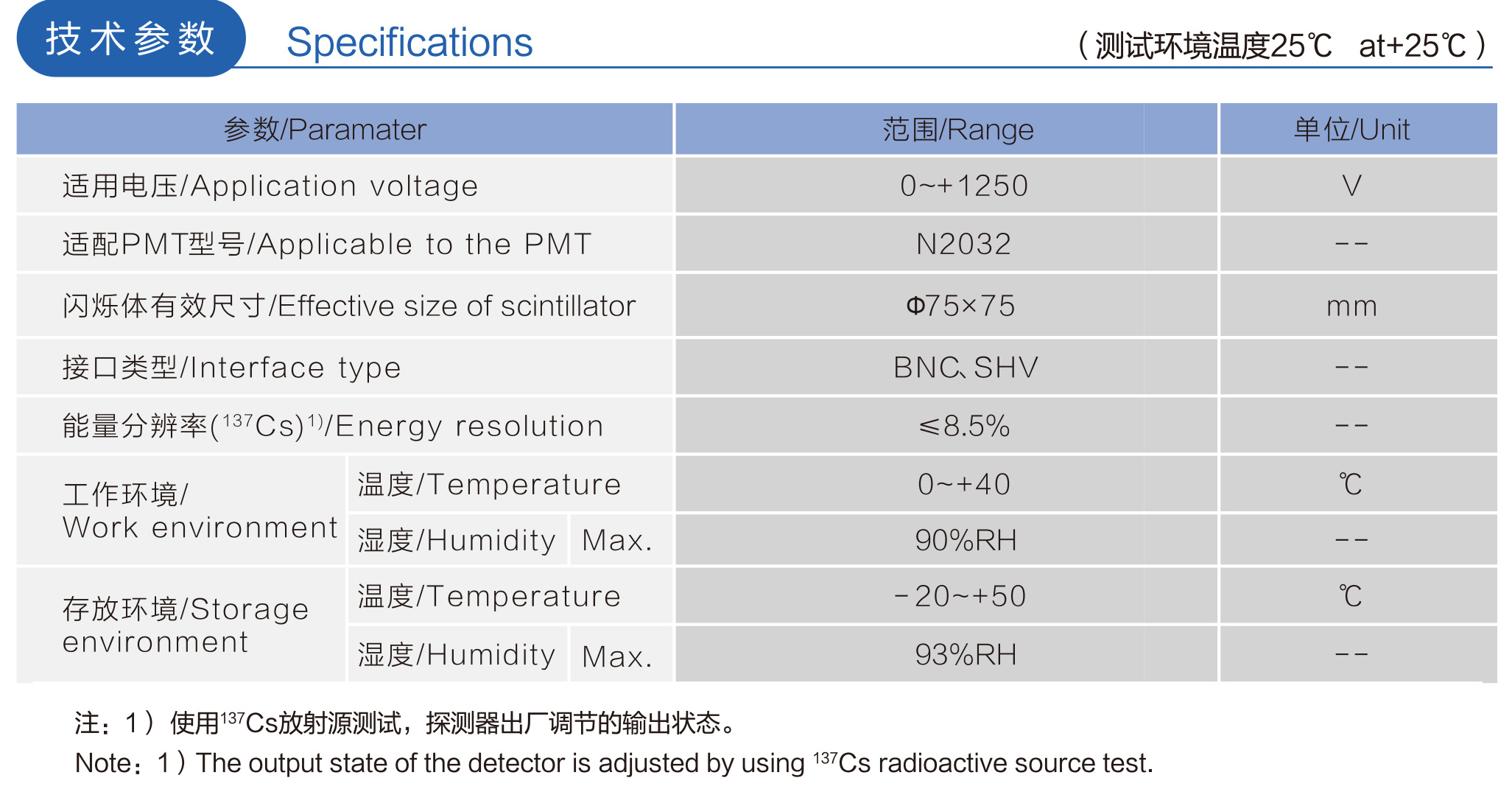 本公司研发M3113闪烁体探头是由NaI闪烁体、光电倍增管组成。由于其具有能量分辨率好、光产额高、使用简单、可靠性高等特点,被广泛应用于工业探测、放射医疗、X射线荧光分析、油井检测等领域。