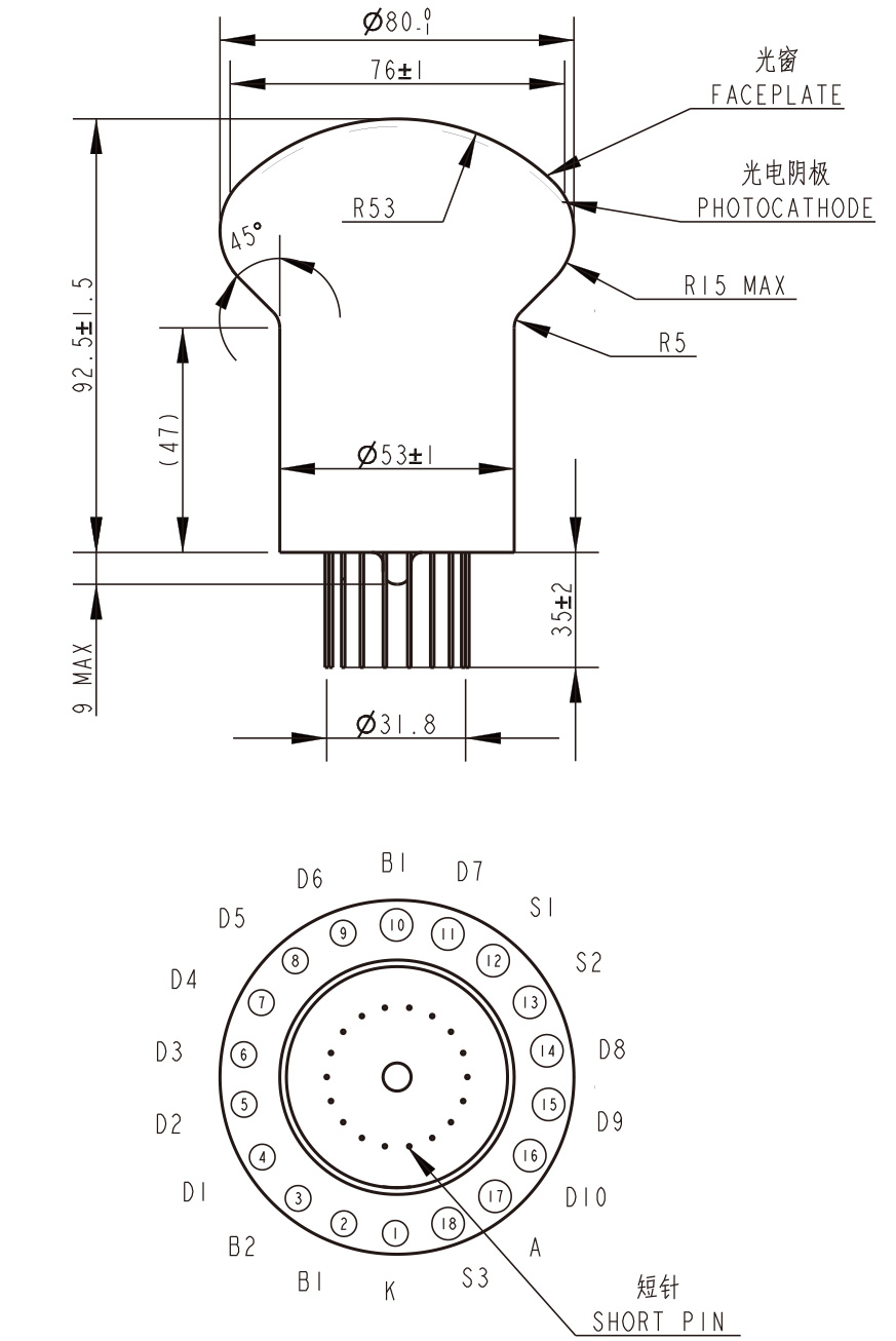 N2034光电倍增管结构图